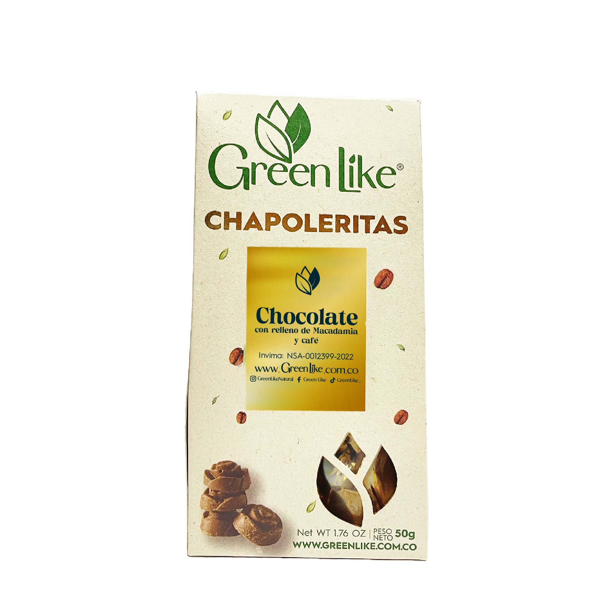 Chapoleras: Chocolate con relleno de macadamia y café.